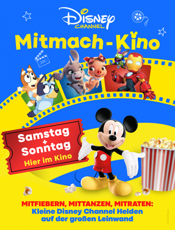 Kino bedeutet Licht aus, Ruhe und Stillsitzen? Nicht beim DISNEY CHANNEL MITMACH-KINO! Disney Channel Mitmach-Kino verbindet den einstündigen Mitmach-Spaß mit kleinen Spielen, Rätseln und Tanzeinlagen, die Helden von Disney Junior fordern zu jeder Menge lustiger Aktionen auf. Moderiert wird von Micky Maus zwar nicht live vor Ort, aber als eigens produzierte Animation auf der Leinwand.